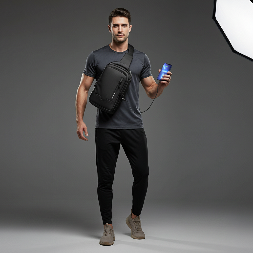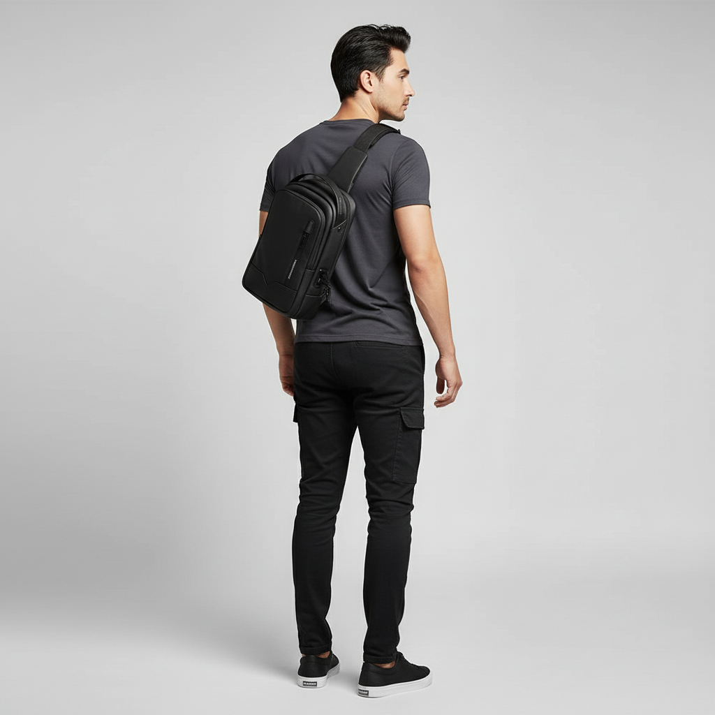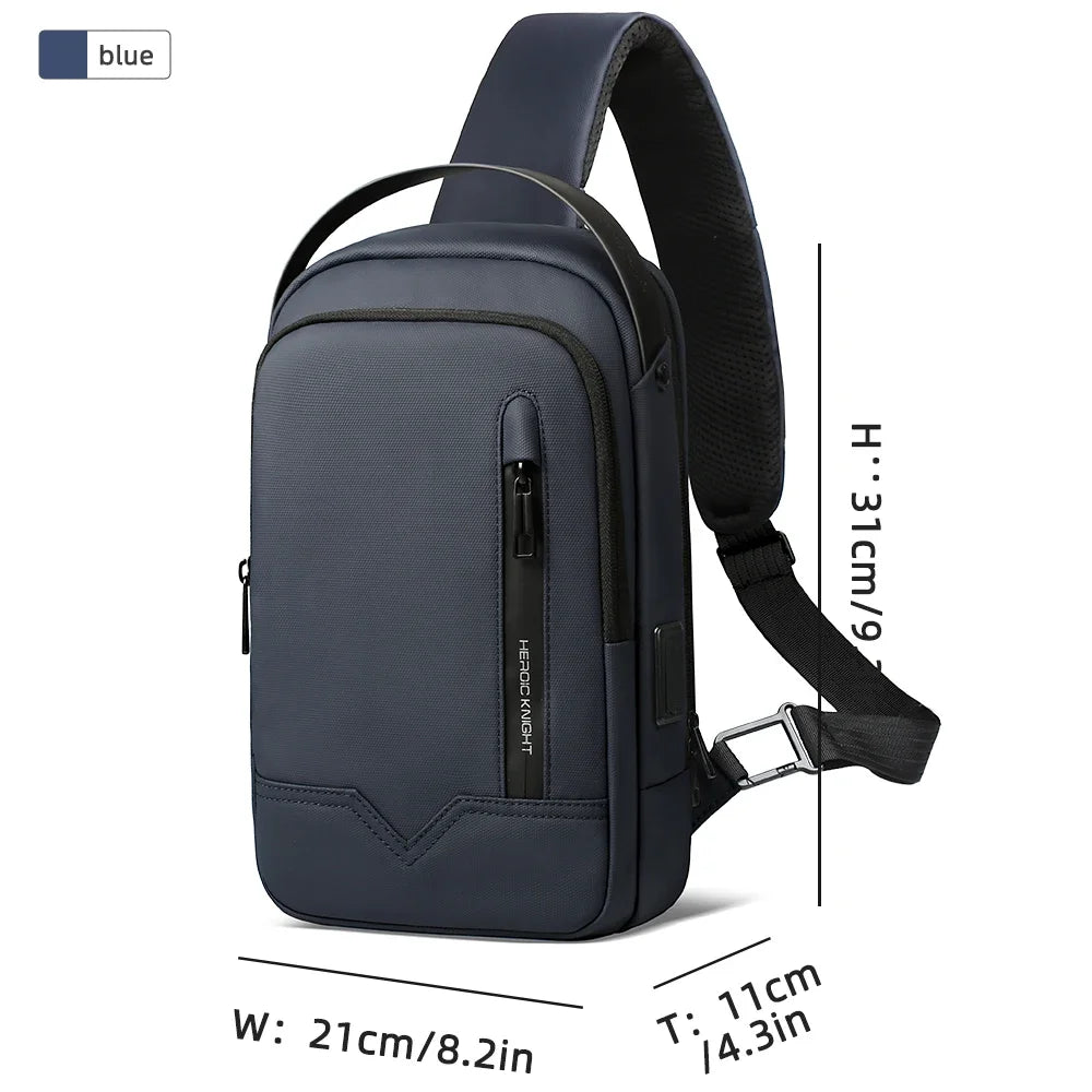 HK Waterproof Men's Shoulder Bag Lightweight Crossbody Bag Oxford Casual Satchel with USB Port Commute Business Chest Bag Male